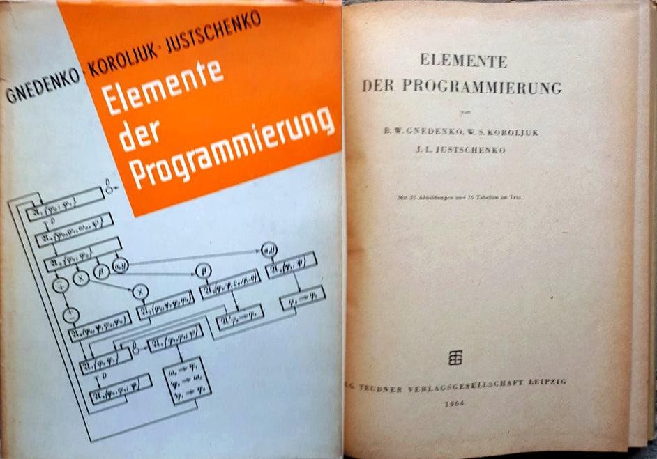Элементы программирования / Б.В.Гнеденко, В.С.Королюк, Е.Л.Ющенко – М.: ГИФМЛ, 1961. – 348 с. – pdf. Видання 1963 року – ідентичне виданню 1961-го; обкладинка 1961 року. Перекладене та видане в Румунії, Чехословаччині, східній Німеччині, Югославії, Данії, Франції, Угорщині. В Болгарії та Польщі тиражували "самвидавом" без перекладу з російської.